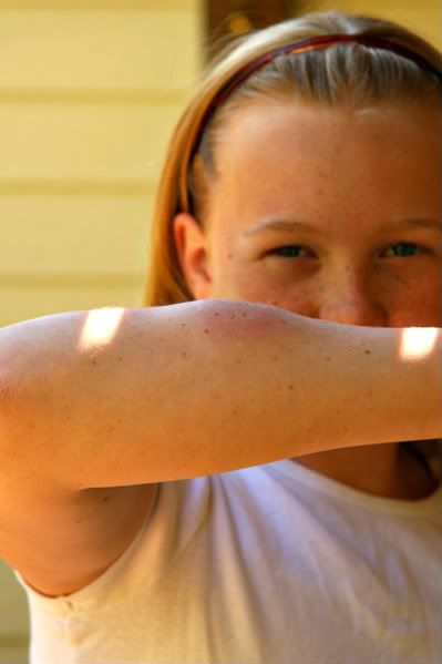 Poor thing. I do feel sorry for her and she is being good and putting anti-itch creme on it. But still.